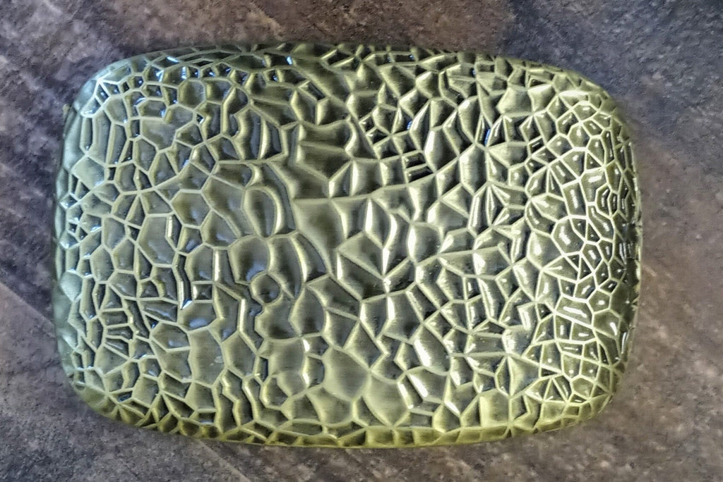 This buckle measures one and a half inches wide by three and one quarter inches long