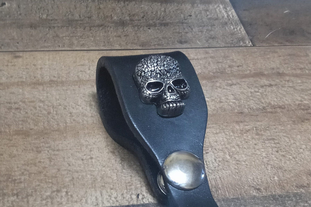 Keychain Biker Skull Spades - Snap on Belt Keeper