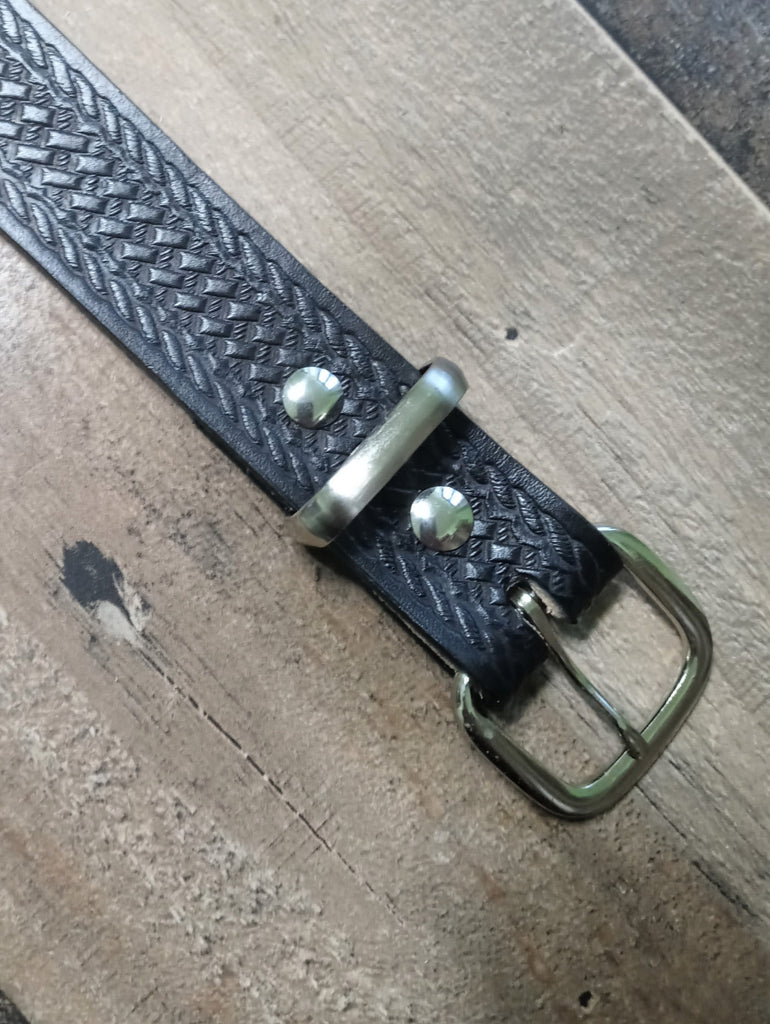 The stylish metal keeper and stout buckle will ensure long belt life.